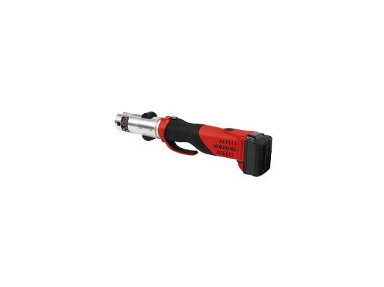 The pressing tool ACO203XL sets new standards in the area of compatible pressings. Versatile applicable – 12 –108 mm for metal applications resp. 14 –110 mm for plastic applications. In comparison to its predecessor its handling is easier due to considerable savings in weight – only 3.9 kg incl battery.