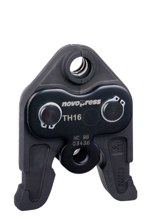 High compression pressing tongs manufactured from specially hardened steel with Novopress technology. Tong contours are system specific and correspond perfectly to the respective press fitting system, ensuring perfect, safe press jointing.