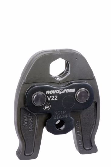 High compression pressing tongs manufactured from specially hardened steel with Novopress technology. Tong contours are system-specific and correspond perfectly to the respective press fitting system, ensuring perfect, safe press jointing.